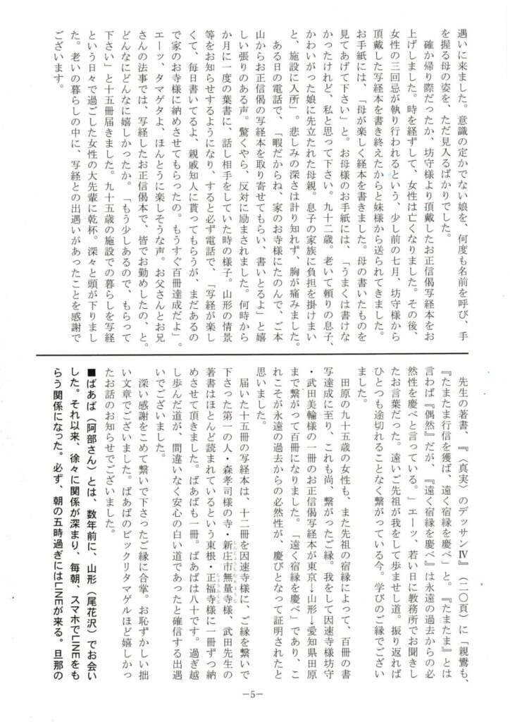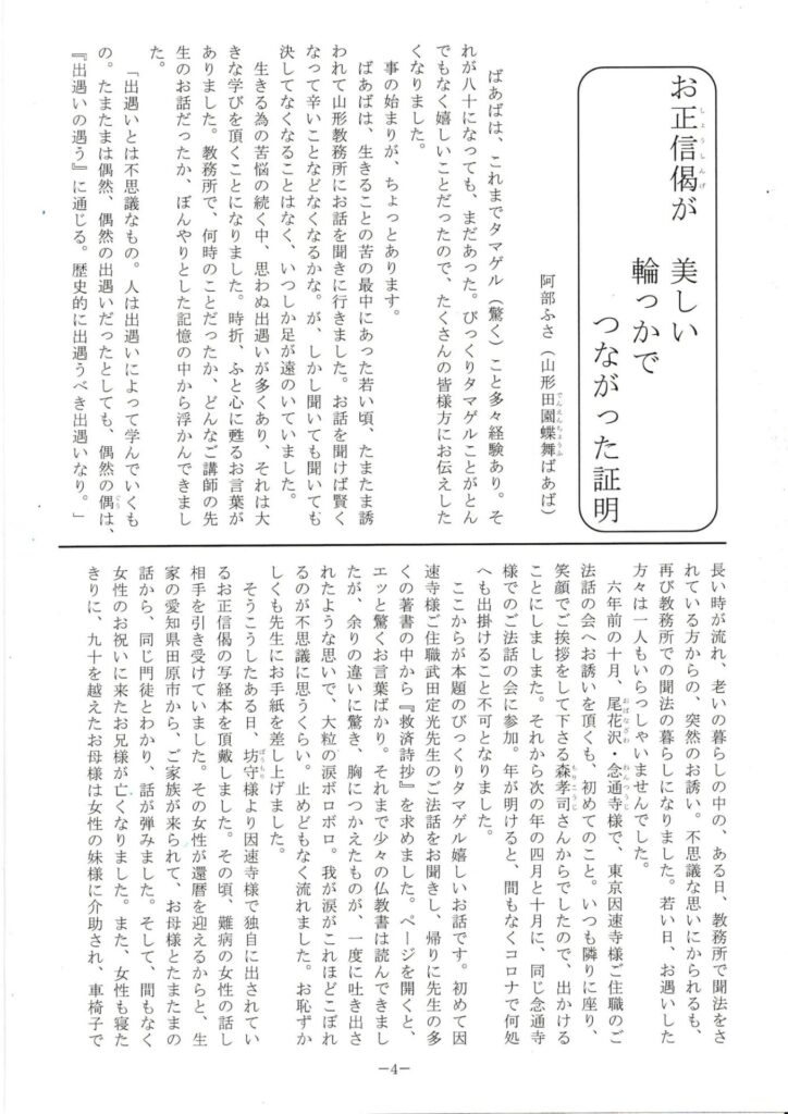 7月31日の同朋の会で会長さんから因速寺様の機関紙138号をいただきました。阿部ふさ様の投稿を転載させていただきます。